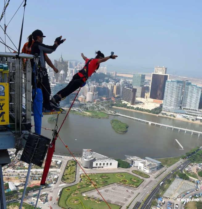 4. 澳门塔蹦极体验是全球最高的商业高跳点之一,大胆者可以挑战从离地面233米的高度一跃而下!